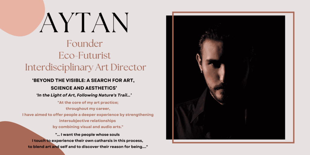 Today, Aytan Art is a synthesis of these two worlds: the activist spirit I carried from the Greenpeace field and the aesthetic mastery I honed on stage. I realised that true ‘catharsis’ (purification) is possible not only through emotional release but also by reconnecting with our biological roots and the ecosystem we are part of. In my visual works, I now seek the light of renewable energy and the textures of the living world. In sound design, I listen to the frequencies of nature. In design, I embrace an ecological approach that transforms waste into art (upcycling) and interprets genetic data in an aesthetic language.